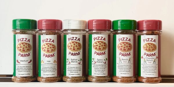 Pizza Parm is a St Louis, Missouri based company with a passion for making your favorite pizza taste even better. The idea for Pizza Parm came one evening... in a bar... drinking beer... and eating pizza. My buddy and I both would put parmesan cheese and red pepper flakes on our pizza. We thought, "How barbaric! The cheese and peppers in separate containers? There has to be a better way!" (Also, the red pepper flakes never want to come out of the under-sized slots of the container. Don't get me started!!) Fast forward to now and we have 6 different blends that are all well balanced combinations of cheese, peppers and spices that goes well beyond parmesan and red pepper alone.